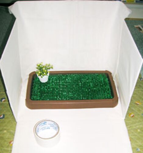 100均ショップに立ち寄ってあれこれ眺めていたら、ふと思いついた。これ、撮影用のステージにできるかもって。うまくできたら写真を撮るときに片付いてない部屋の様子が写る心配をしなくていい。ヽ(゚∀゚)ノ 買ったもの 園芸用トレイ 人工芝(一切れ) 白いはぎ…